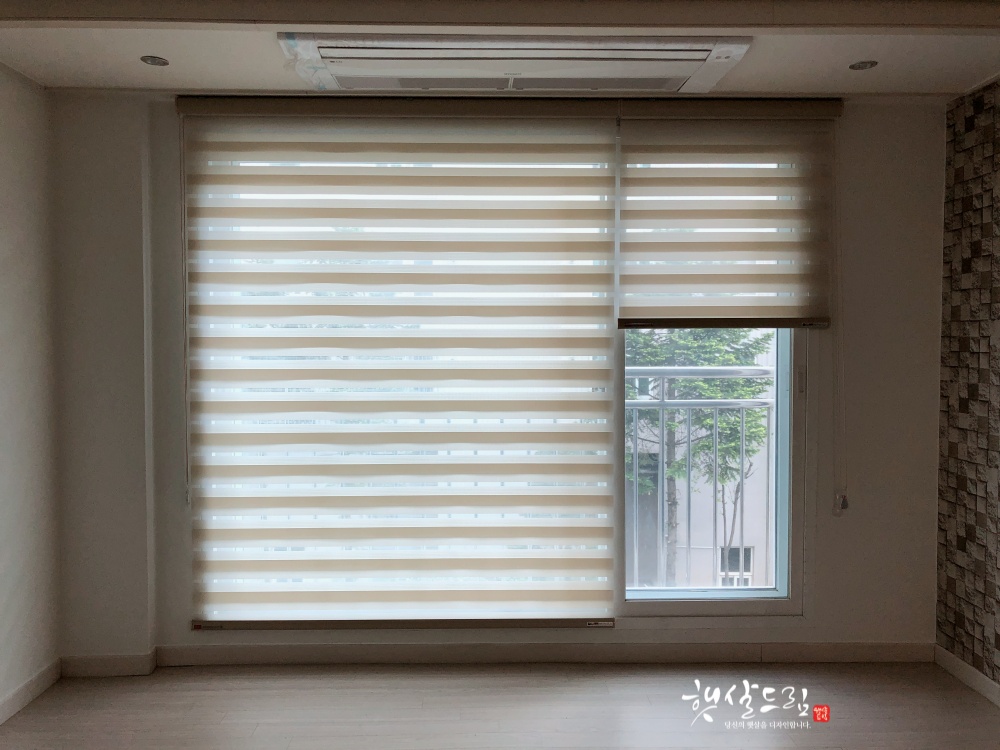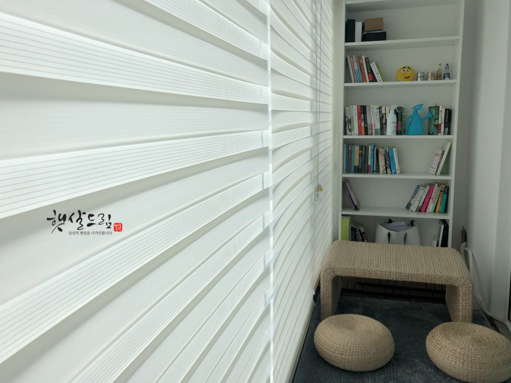 또한 포인트가 필요한 작은 창에는 컬러가 있는 콤비블라인드를 설치하면 포인트를 줄 수도 있어 마치 액자를 걸어둔것 같은 효과가 있습니다.