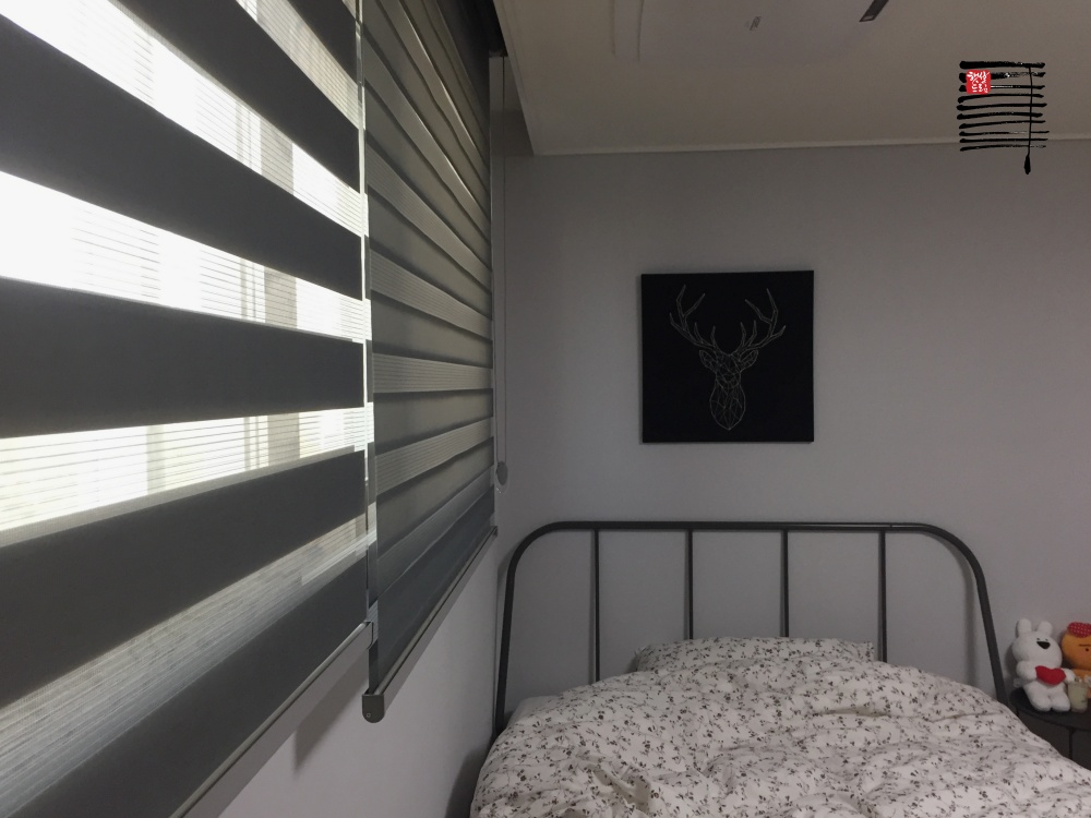 최근에는 침실에도 짙은 컬러의 콤비블라인드를 사용하는 분들이 많이 늘었습니다. 암막콤비블라인드가 따로 있기는 하지만 짙은 컬러의 기본형 콤비블라인드도 가격대비 충분한 암막효과를 가지고 있고 커튼보다 관리가 편하고 계절에 따라 분위기를 쉽게 바꿀 수 있다는 장점이 있습니다.
