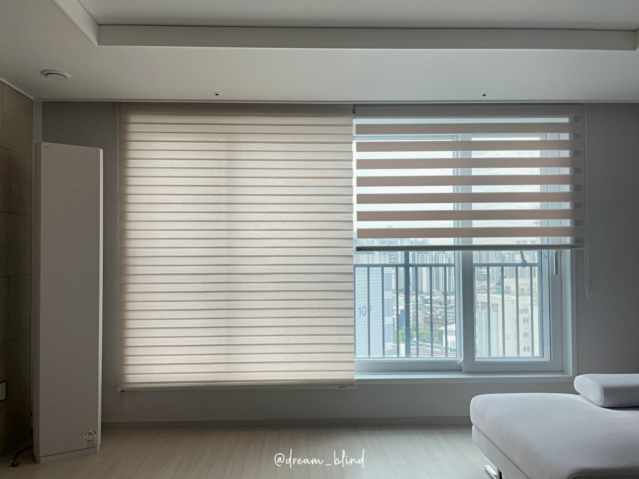 특히 콤비 블라인드는 가볍고 작동이 쉬워 끝까지 올리고 내리는 것도 문제없고 요즘에는 기능성 원단이 많이 나와 뜨거운 햇살은 물론 자외선까지 99% 차단해주고 있어요