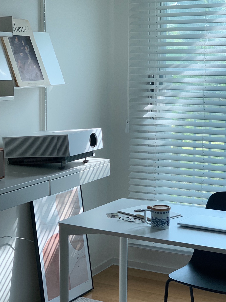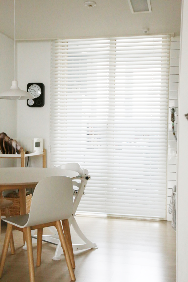 화이트 컬러는 집안 곳곳을 환하게 만들어 조금 더 넓어 보이는 효과도 누릴 수 있어요. 우드블라인드의 장점은 무엇보다도 사용의 편리성이랍니다.