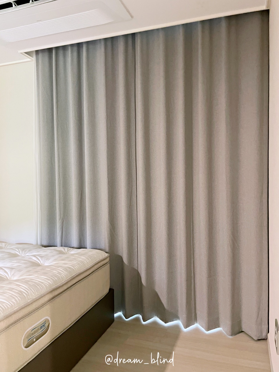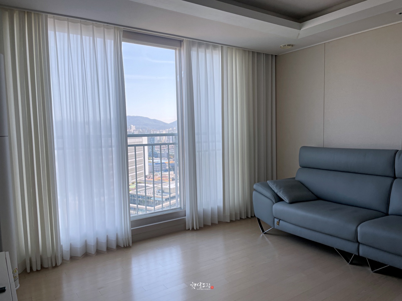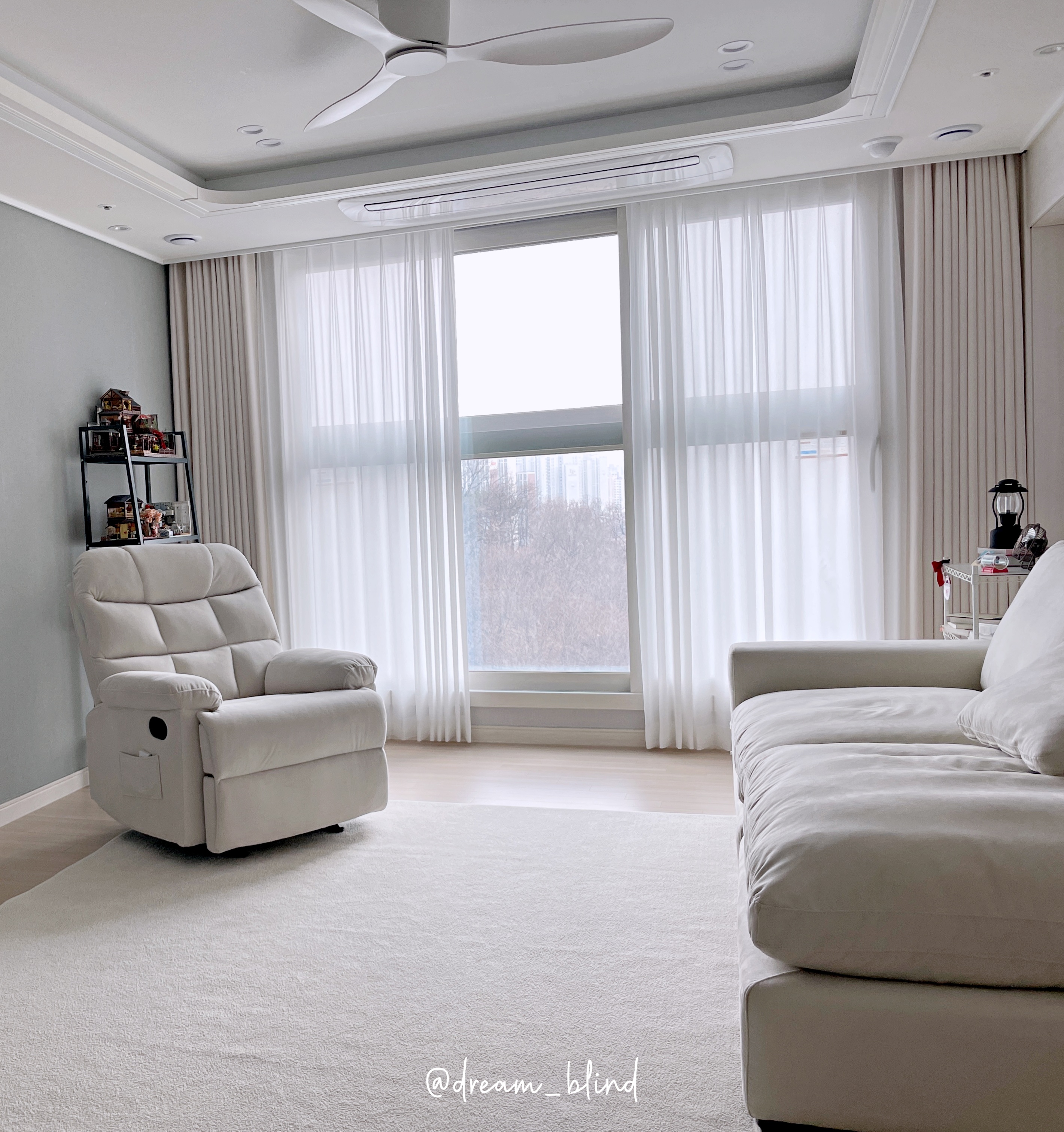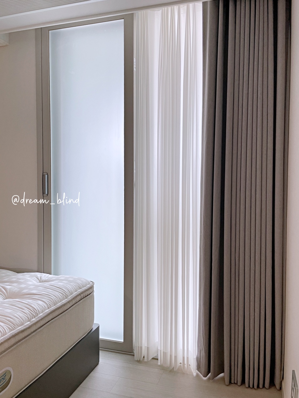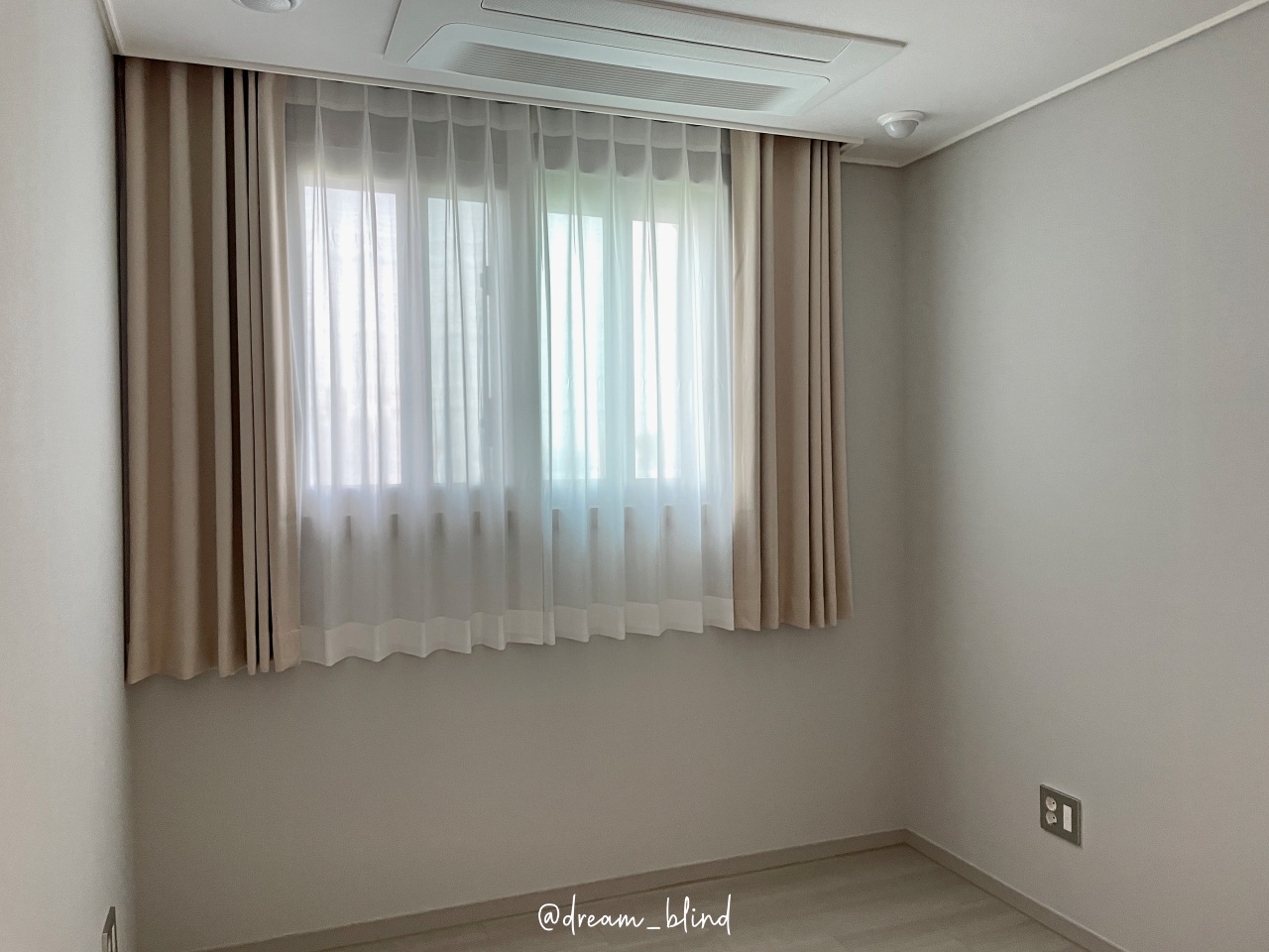 이렇게 보시는 사진처럼 겉커튼 하나로도 많이들 하시고 속커튼을 같이 시공해서 사용하지않을 때는 속커튼 하나만 사용해서 분위기와 사용감을 원하시는 분들도 많으세요.
