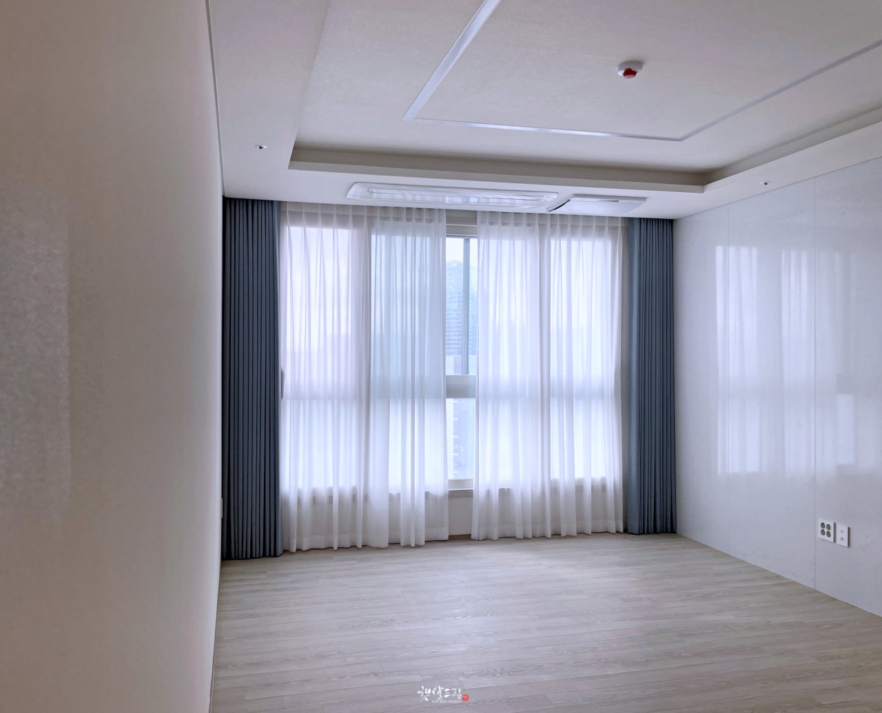 이렇게 보시는 사진처럼 겉커튼 하나로도 많이들 하시고 속커튼을 같이 시공해서 사용하지않을 때는 속커튼 하나만 사용해서 분위기와 사용감을 원하시는 분들도 많으세요.